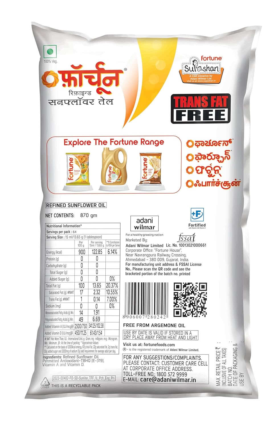Fortune Sunflower Oil is a light, healthy and nutritious cooking oil. Being rich in vitamins and consisting mainly of polyunsaturated fatty acids, it makes food easy to digest.