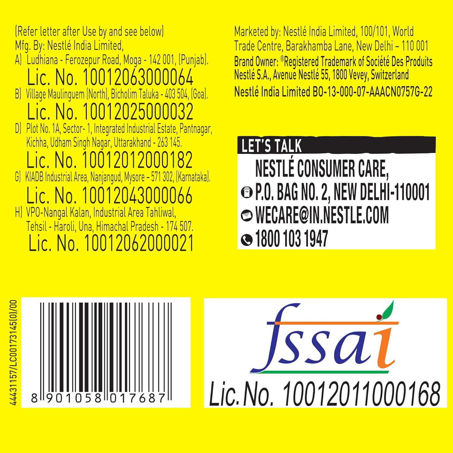 MAGGI 2-Minute Instant Masala Noodles is a favorite among people of all ages. MAGGI Masala instant noodles now come with the goodness of iron. Each portion (70g) of MAGGI masala noodles provides you with 15% of your daily iron requirement. It is just the perfect choice for those who need a quick and satisfying meal. MAGGI instant noodles are made with the choicest quality spices and ingredients to provide a great taste and experience. Usage instructions: Prepare a delicious meal in just 2 minutes with MAGGI – boil 1 cup of water and add the tastemaker along with the noodle cake broken into 4 pieces. Cook for 2 minutes in an open pan, while you stir occasionally. Do not drain the remaining water. Garnish with your favorite veggies and serve hot. Storage instructions: Store in a cool, dry and hygienic place to protect from insects, pests and strong odors.